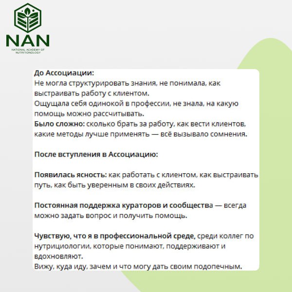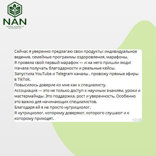 Для выпускников NAN, которые уже ведут практику